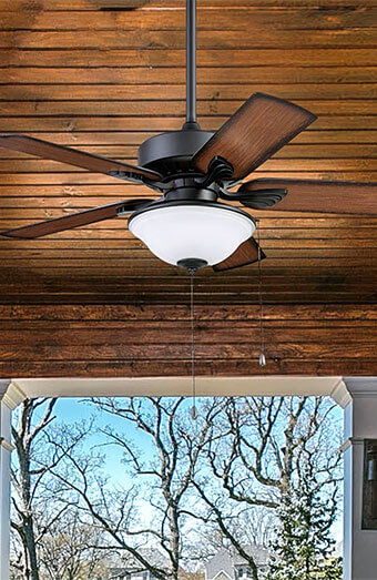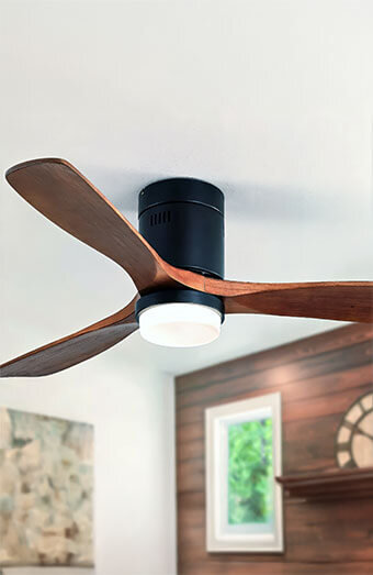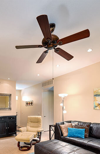 Professional installation of new ceiling fans in bedrooms, living rooms, patios and offices with options for standard or modern low-profile designs.